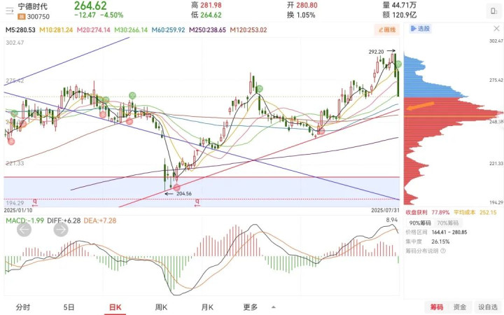 时间来到7月30日,市场信号出现显著变化:上证指数冲高至接近上方压力线后回落,收出一根十字星;创业板指则收出孕育阴线。这两大信号被明确判定为“本轮上涨中确定性较高的转弱信号”,并同步给出具体防守策略——上证指数以3593点为防守位,创业板指以2355点为防守位,为调整风险设置了“预警线”。